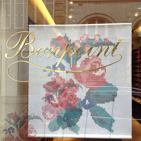 Grands panneaux brodés aux points de croix pour la décoration des vitrines